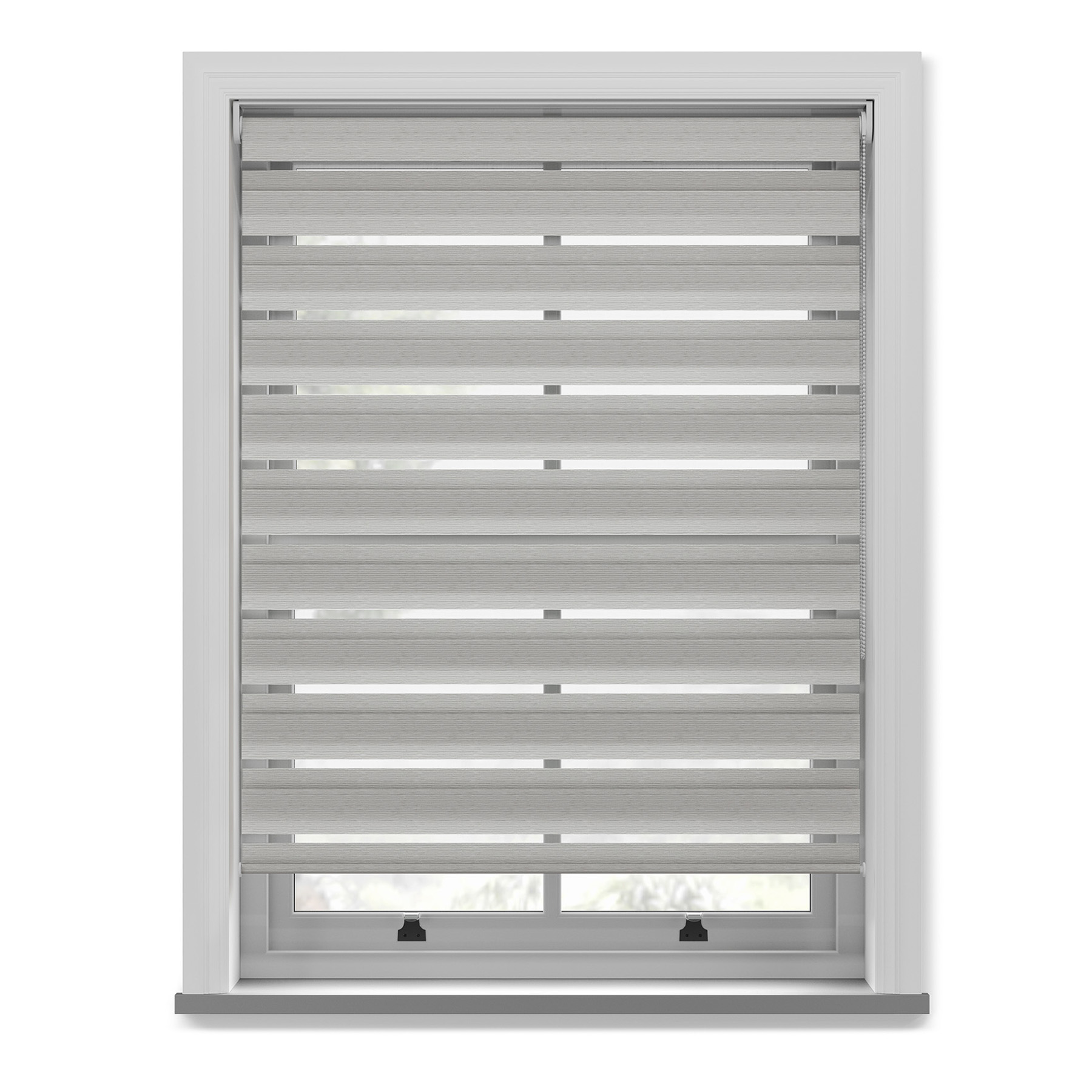 The dual-layer design features alternating sheer and dim-out panels, allowing you to fine-tune privacy and daylight throughout the day — no need to fully lift the blind.