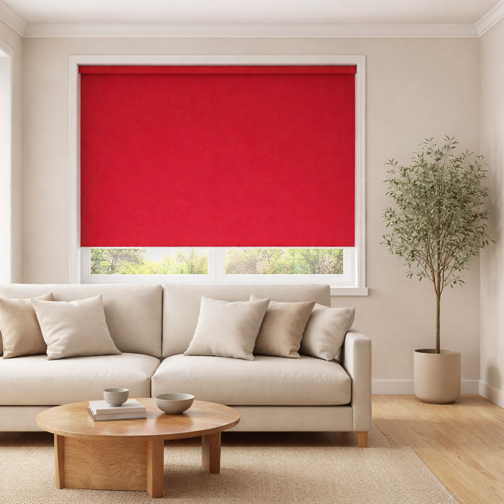 Bring rich, dramatic colour into your home with our Splash Scarlett Roller Blind, expertly made to measure by M2M Blinds. Finished in a deep, classic scarlet red with a smooth, elegant texture, this fabric adds warmth, confidence and a luxurious feel to any room – perfect for dining spaces, feature windows, boutique-style bedrooms, home bars or bold modern interiors.